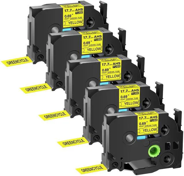 GREENCYCLE 5 Pack Compatible for Brother P-touchHSe-241 HSE641 HS-241 HS241 17.7mm 0.69'' x 1.5m Black on Yellow Heat Shrink Tubes for Wires Cables