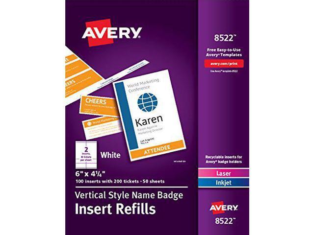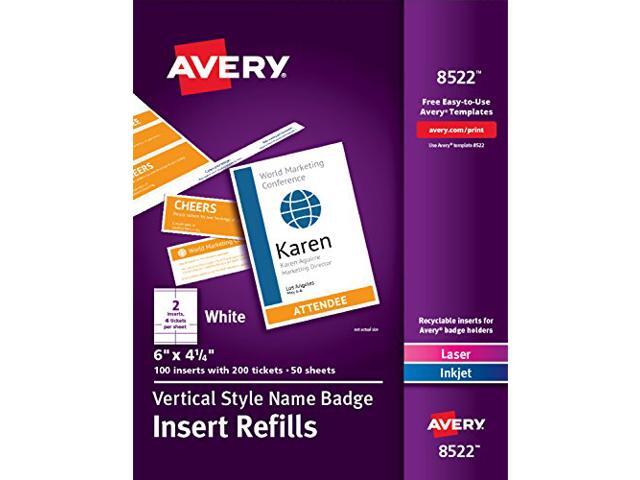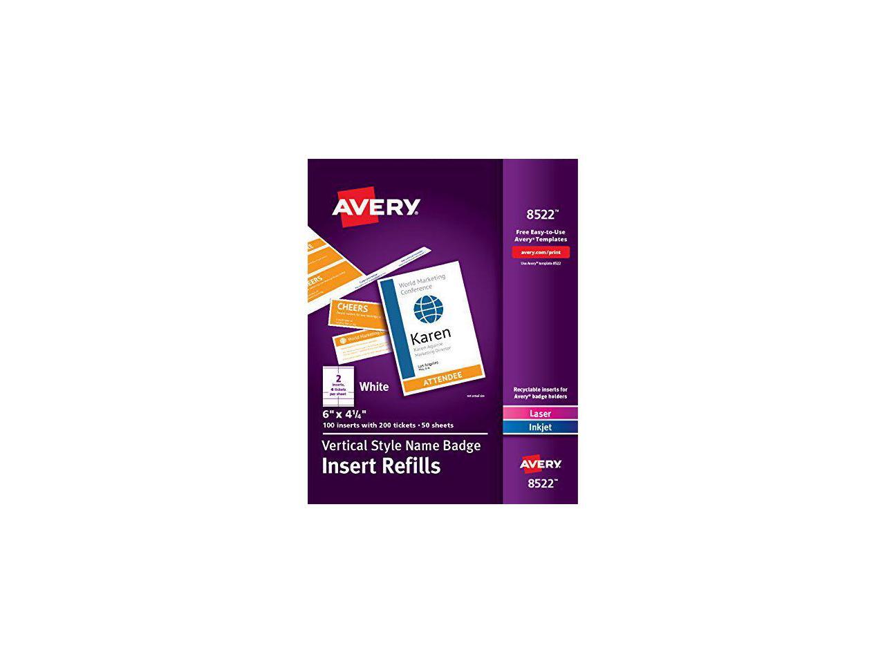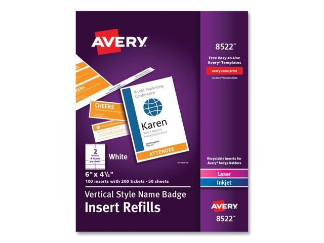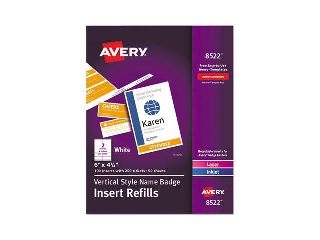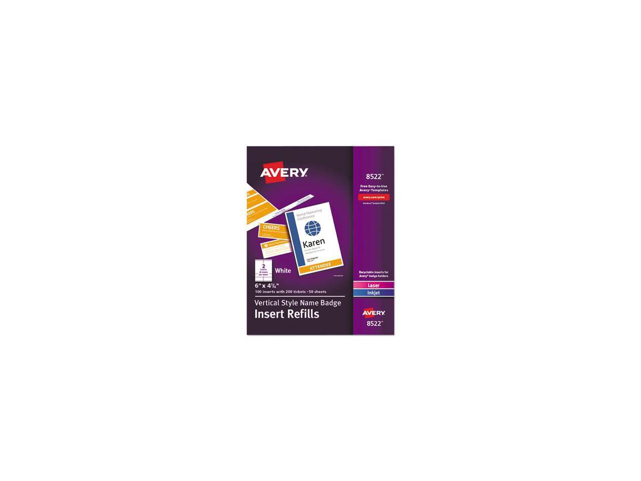 Avery® Vertical Name Badge Inserts, 6" x 4 1/4", White, Box Of 100 Inserts
