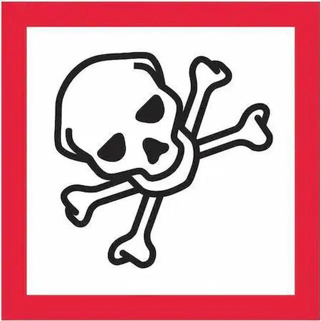 Tape Logic® Pictogram Labels, Skull and Crossbones, 1" x 1", Black/Red/White, 500/Roll