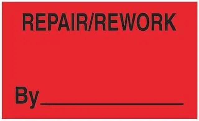 Tape Logic® Labels, "Repair/Rework By", 3" x 5", Fluorescent Red, 500/Roll