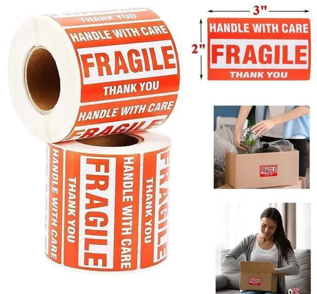 2 Rolls 2" x 3" Fragile Handle With Care Thank You Labels 500 Per Roll Stickers