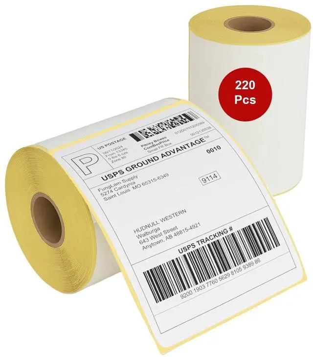 Each label measures 4 x 6 inches, meeting carrier standards for USPS, UPS, FedEx, and Amazon shipments. Suitable for warehouse and office use.