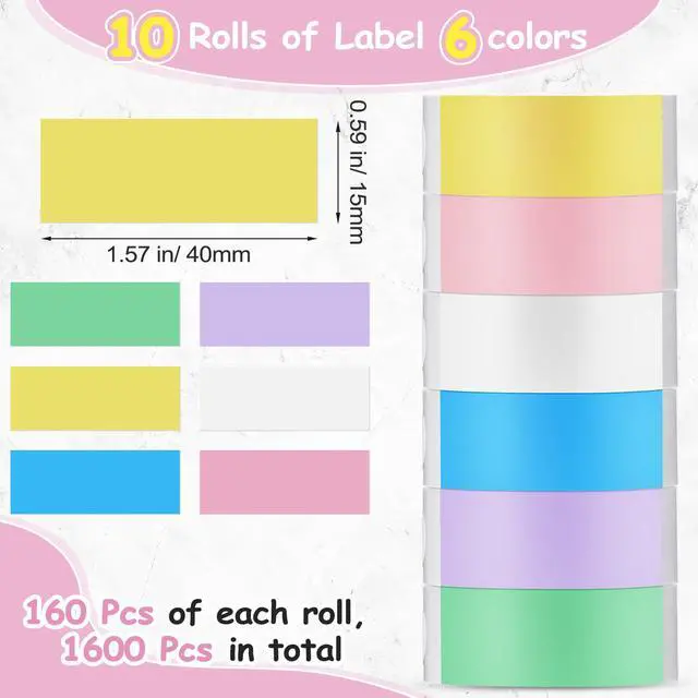 Package Quantity: you will get 10 rolls of label printer paper, 160 pieces of labels for each roll, 1600 pieces in total, enough quality yo meet your daily usage and replacement; Note: There are 2 reasons why the stickers can't be printed sometimes; One is that the stickers are put in reverse, and the other is that the printer's power is insufficient, and it would be better to charge it for a while
