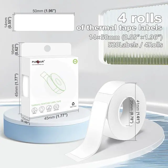 Product size -14mm*50mm (0.55 "x 1.96"); Thermal stickers compatible with D30 Portable Label Maker for labeling. Label Paper Printing without ink or ribbon! It has the function of Clear printing, Waterproof,Oil-proof, Tear-resistant and Scratch-resistant.