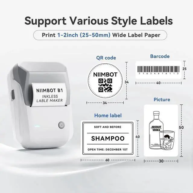 EASY TO USE B1 bluetooth label maker supports iOS & Android and PC. The app included more than support 30+ fonts/Languages, 100+ borders, and 1500+ symbols. Just need to download the free app, choosing and connecting printer model B1 from NIIMBOT APP, Then Enjoy Printing.