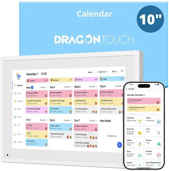 All-in-One Family Organizer10 touchscreen digital calendar simplifies family scheduling. Create events by role or events, switch between daily, weekly, and monthly views effortlessly. Ideal for syncing everyones activities, from school events to work meetings