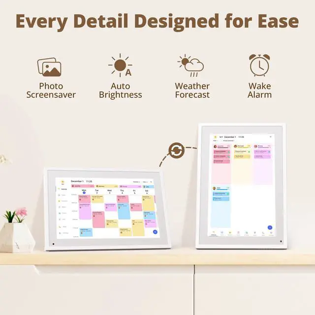 Effortless Setup, Lasting ConvenienceIntuitive touch controls make navigation easy for all ages. Compact yet feature-rich, this calendar planner streamlines family life, helping you manage time, share schedules, and create routines with ease