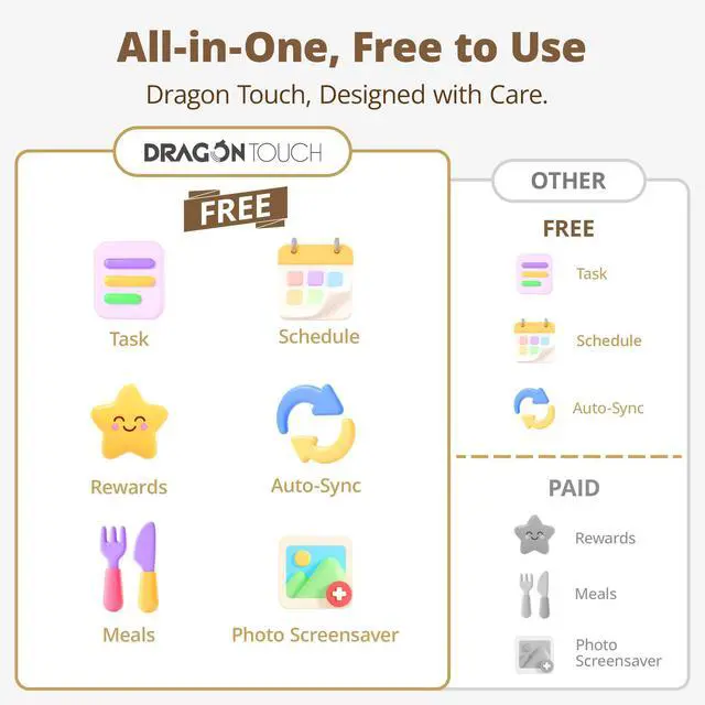 All-In-One Smart Family Calendar: Dragon Touch digital frame effortlessly organizes and tracks every family schedule with the crystal-clear 10.1" touchscreen. Assign different colors and tasks to each family member, making family scheduling simpler and more intuitive.