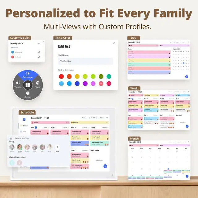 Easy Setup and Auto-Sync: Enjoy a user-friendly design that our smart picture frame allows for quick setupjust plug in, connect to Wi-Fi, and link your calendar to the Mobile App. Once synced, it seamlessly integrates multiple personal calendars (iOS, Google, etc.) into one unified interface. Authorize additional devices for even greater convenience.
