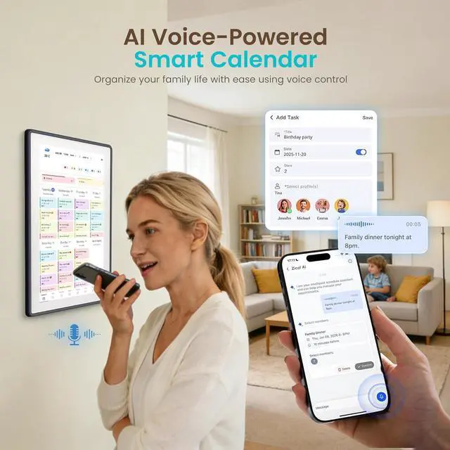 AI-Powered Family Command Center: Upgrade your home organization with a 15.6 AI-powered digital calendar designed to function as your familys central command center. Manage schedules, meals, tasks, and reminders on one intelligent touchscreen hub that keeps everyone aligned and in control.