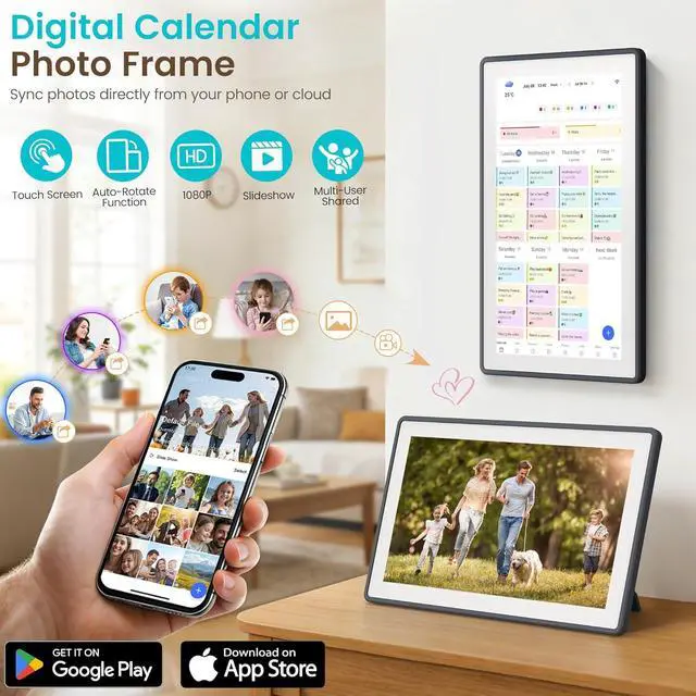 WiFi Digital Picture Frame & Smart Display: Transform your calendar into a stunning digital picture frame when not viewing schedules. Instantly share photos and display cherished memoriescombining productivity and personalization in one elegant device.