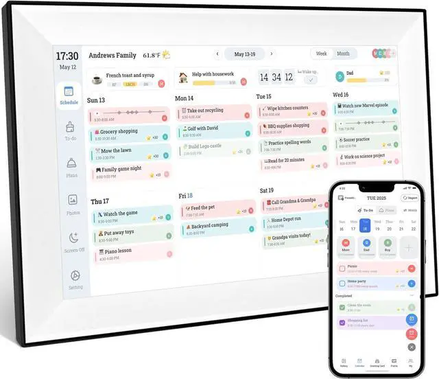 The Hub Where Love Organizes: Mount it in the kitchen or stand it on your desk this 10.1" touchscreen becomes your familys command center. Features alarm setting, to-do lists, and a clear monthly/weekly schedule view perfect for busy families.With 14 languages, sleep mode & wall-mount, it adapts to your homes rhythm.