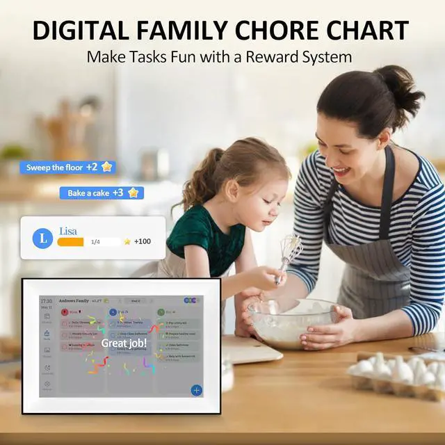 Reclaim Family Moments: Finally spend quality time together instead of chasing schedules. The Digital Family Wall Calendar is automatically synchronized with the App, meal times & chores so no more missed moments.