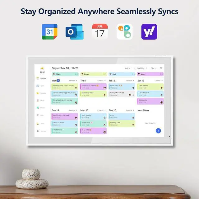 Photo Display & Custom Lists: Display your favorite photographs when your calendar isnt in use. You can even organize photos into albums to choose what gets featured! Custom lists for every adventure, from packing for a beach trip to getting ready for the holidays, create lists for everything and anything you need to remember.
