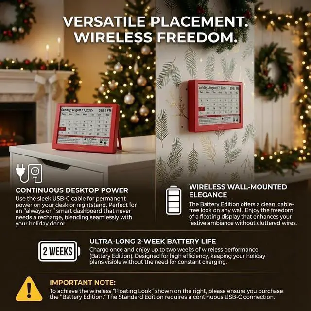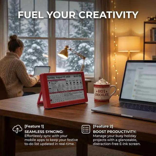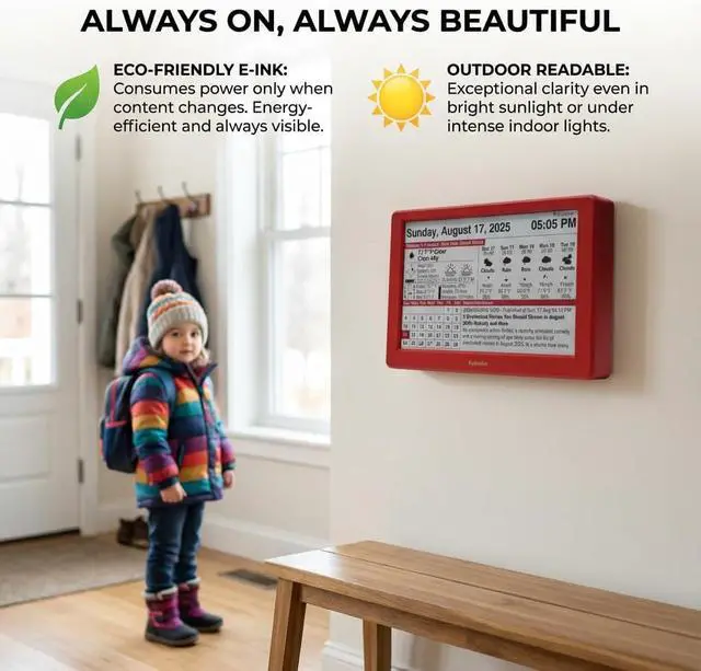 7-Inch Eye-Care E-Paper Display: Featuring a premium 7-inch E-Ink screen, this desk calendar mimics real paper with zero blue light and no flicker for a comfortable reading experience. The 180° ultra-wide viewing angle ensures clarity from any corner of your office.