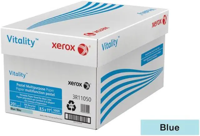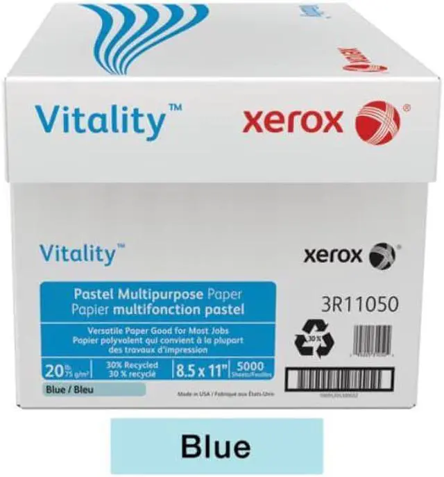 Colored Xerox paper is versatile enough for most jobs in eye-pleasing pastel colors that catch the eye. Vitality pastel multipurpose paper is great for color coding and organizing. They are designed to run in all types of printers and copiers. 20-lb paper is ideal for everyday use. Acid-free paper won't yellow or fade over time. Use Vitality multipurpose paper in standard printers or high-speed, digital printing equipment. Eco-conscious choice - has one or more meaningful eco-attributes or eco-labels. Recycled content - Product contains 30% total recycled content, including 30% postconsumer content, helping you save resources and reduce waste. Letter-size paper is FSC-certified, 30% recycled and blue in 500 sheets. Leadership forestry - from forests or sourcing programs that meet specific environmental standards, helping you support practices that better protect forests and the environment. Forest Stewardship Council® (FSC®) certified - made from wood/paper that comes from forests managed to rigorous environmental and social standards, supported by the world's leading conservation organizations.