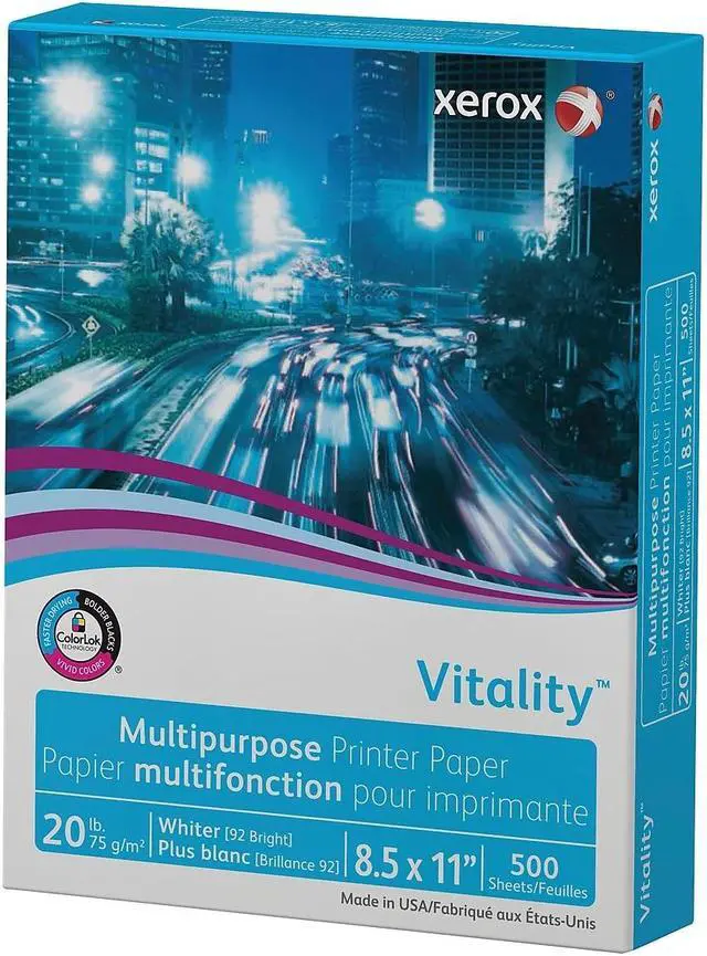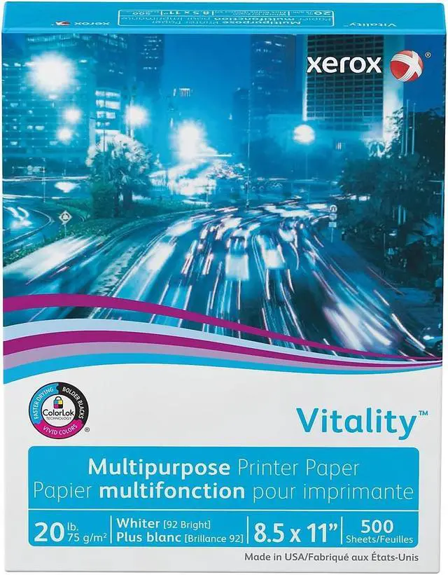 Reliable multipurpose paper is perfect for everyday use. One ream, 500 sheets total. Features ColorLok Technology for more vivid colors, bolder blacks, and faster drying.