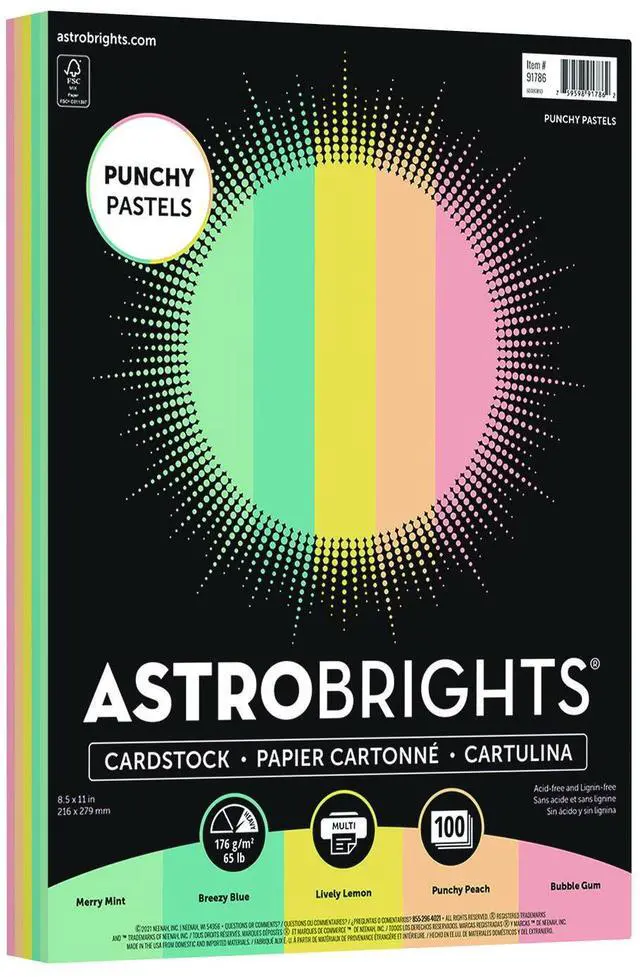 Astrobrights Color Cardstock -"Punchy Pastels" Assortment, 65 lb Cover Weight, 8.5 x 11, Assorted, 100/Pack 91786