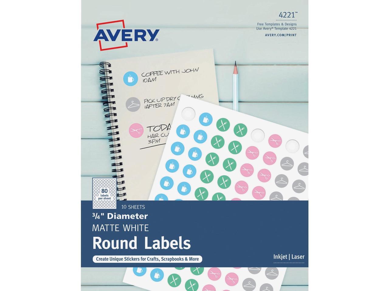 Avery Printable Round Labels with Sure Feed, 3/4" Diameter, Matte White, 800 Customizable Labels (4221)