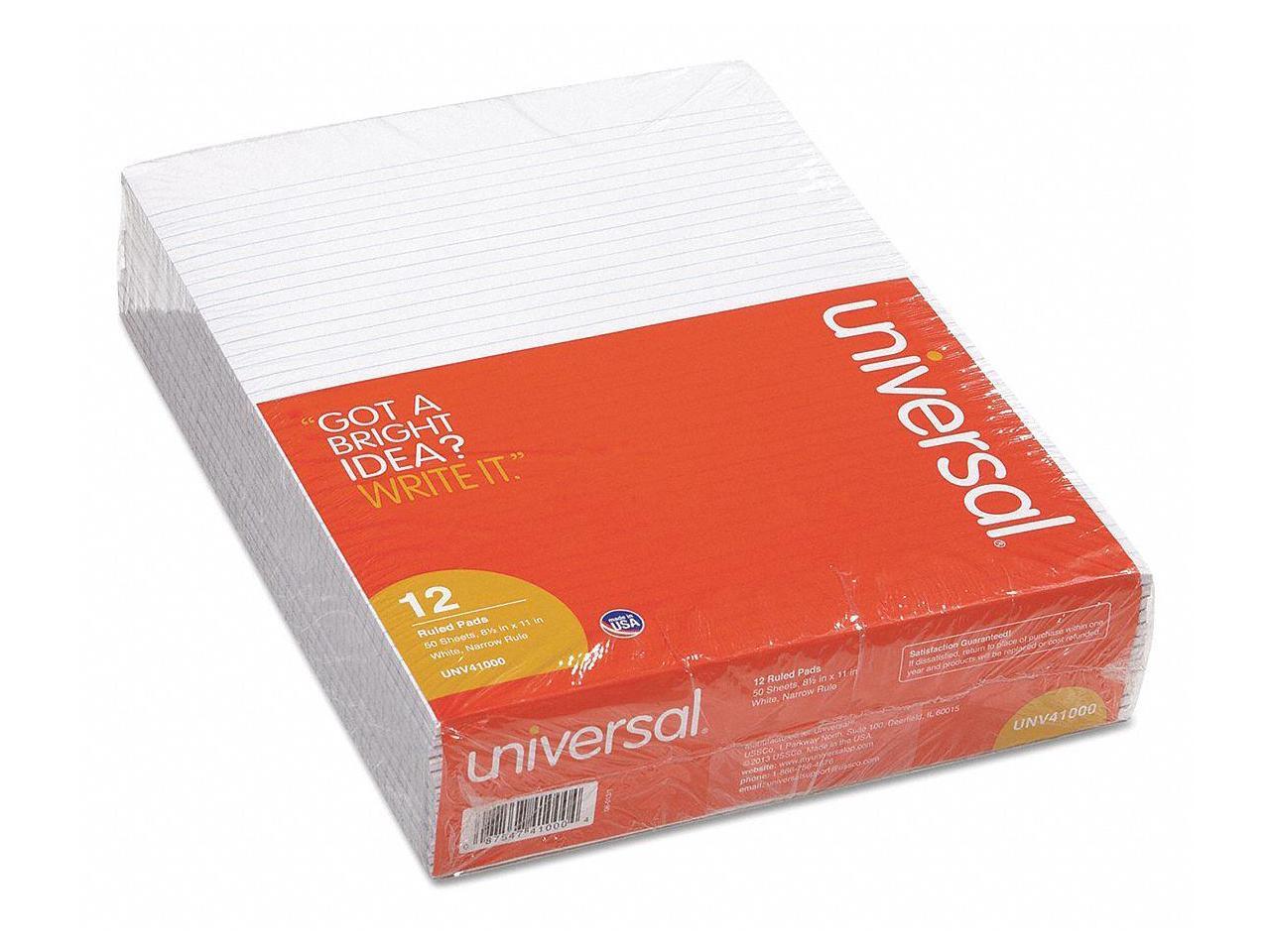 Universal Writing Pad, 8-1/2 x 11 In, PK12 UNV41000