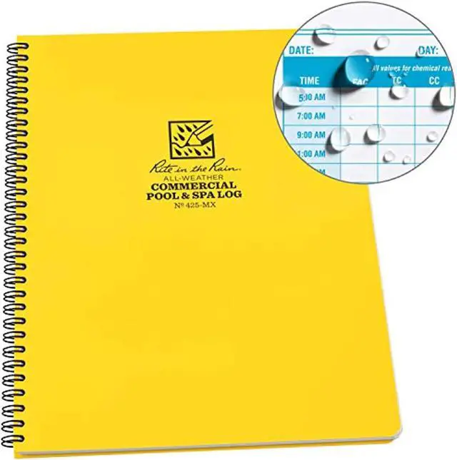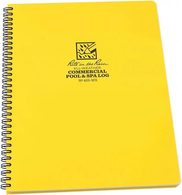 All Weather Pool & Spa Log, Cover Color Yellow, Cover Material Polyethylene, Continuous Feed, Length 11 in, Number of Duplicates 0, Carbon Copies No, Width 8 1/2 in, Number of Sheets 47, Paper Color White. This item has been restricted from sale in the following state (s): []