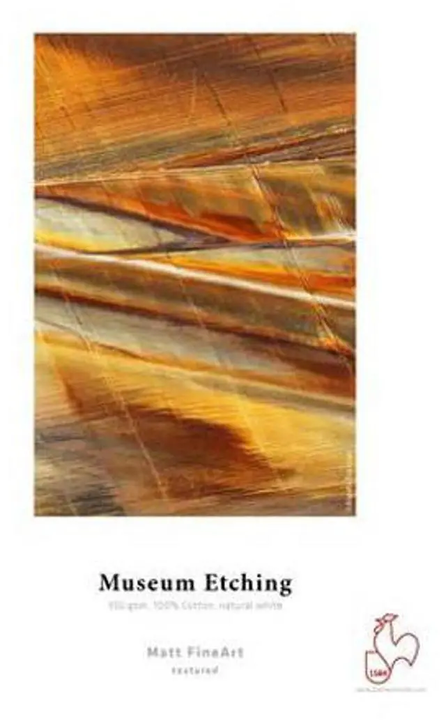 Museum Etching 350 gsm... Those wanting the ultimate in fine art media, Museum Etching presents the delicate tactile feeling of Hahnemule's renowned German Etching 310gsm, but with a heavier weight 100% Cotton Rag base, with a more natural white base color.