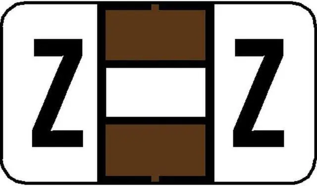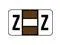 These Tab 7200 Compatible "Z" Labels feature a wrap-around Brown-colored bar, with a white-colored bar in the middle 1/3, and a colored "Z" printed on a white background. Label Size: 1 5/8" W x 15/16" H, Before Folding. Laminated for protection.