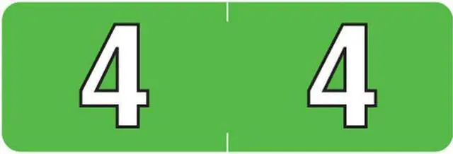 These Barkley NBAM Compatible Numeric "4" Labels feature a wrap-around solid Light Green bar and a White "4" outlined in Black. Label Size: 1-1/2" W x 1/2" H, Before Folding. Laminated for Protection