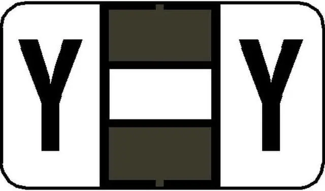 These Tab 7200 Compatible "Y" Labels feature a wrap-around Gray-colored bar, with a white-colored bar in the middle 1/3, and a colored "Y" printed on a white background. Label Size: 1 5/8" W x 15/16" H, Before Folding. Laminated for protection.