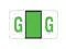 These POS Compatible "G" Labels feature a wrap-around Light Green bar and a Light Green "G" printed on a white background. Label Size: 1 5/8" W X 15/16" H, Before Folding