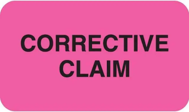 Insurance Collection Labels, CORRECTIVE CLAIM - Fl Pink, 1-1/2" X 7/8" (Roll of 250)