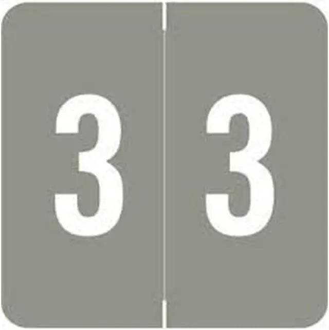 These Sav-Tyme MDRL Compatible Numeric "3" Labels feature a wrap-around solid Gray bar with a white reversed "3" printed on a white background. Label Size: 1 1/2" W x 1 1/2" H, Before Folding. Laminated for protection.