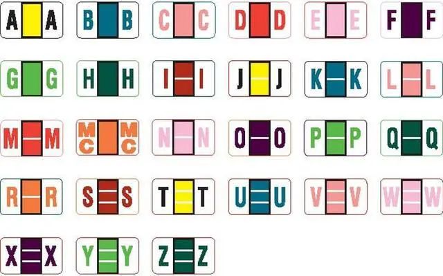 POS Compatible Alpha Labels, Laminated Stock, 15/16" X 1-5/8", Starter Set - 27 Rolls of 500 Laminated for protection 500 per roll Desk top roll sets LABEL SIZE: 1 5/8" W x 15/16"H, Before Folding 1