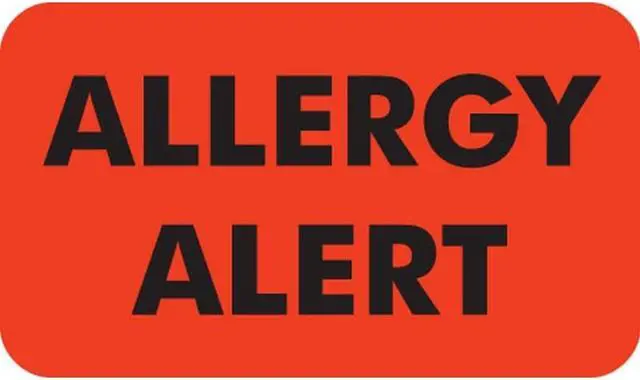 Allergy Warning Labels, Allergy Alert - Fl Red, 1-1/2" X 7/8" (Roll of 250) Allergy Alert Fl Red 1-1/2" X 7/8" (Roll of 250)