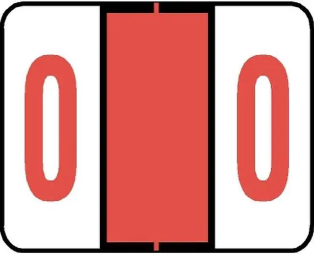 These Tab Compatible Numeric "0" Labels feature a wrap-around solid Pink bar and a Pink 0 printed on a white background. These labels are compatible with Tab Products end tab filing systems. Label Size: 1 1/4" W x 1" H, Before Folding.