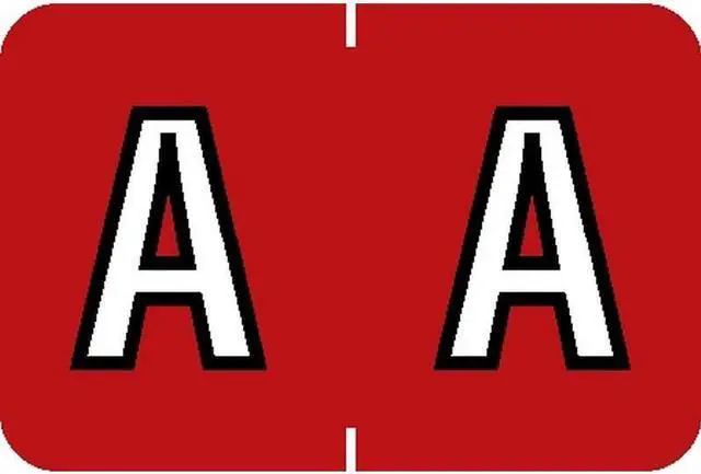 These Barkley ABKM Compatible "A" Labels feature a wrap-around solid Red bar and a White "A" outlined in Black and printed on a white background. Label Size: 1-1/2" W X 1" H, Before Folding. Laminated for Protection