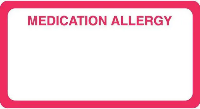 Allergy Warning Labels, MEDICATION ALLERGY - Red/White, 3-1/4" X 1-3/4" (Roll of 250) MEDICATION ALLERGY Red/White 3-1/4" X 1-3/4" (Roll of 250)