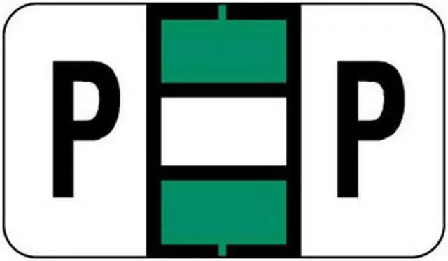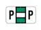 These Jeter 0200 Compatible "P" Labels feature a wrap-around Green-colored bar and a colored "P" printed on a white background. Label Size: 1 5/8" W x 15/16" H, Before Folding. Laminated for protection.