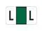 These Jeter 0200 Compatible "L" Labels feature a wrap-around Green-colored bar and a colored "L" printed on a white background. Label Size: 1 5/8" W x 15/16" H, Before Folding. Laminated for protection.