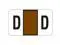 These Jeter 0200 Compatible "D" Labels feature a wrap-around Brown-colored bar and a colored "D" printed on a white background. Label Size: 1 5/8" W x 15/16" H, Before Folding. Laminated for protection.