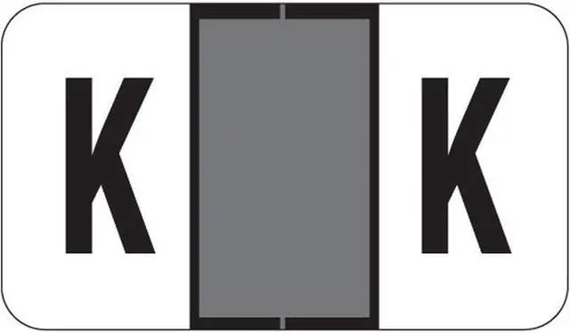 These Jeter 0200 Compatible "K" Labels feature a wrap-around Gray-colored bar and a colored "K" printed on a white background. Label Size: 1 5/8" W x 15/16" H, Before Folding. Laminated for protection.