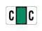 These Jeter 0200 Compatible "C" Labels feature a wrap-around Green-colored bar and a colored "C" printed on a white background. Label Size: 1 5/8" W x 15/16" H, Before Folding. Laminated for protection.