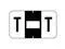 These Jeter 0200 Compatible "T" Labels feature a wrap-around Black-colored bar and a colored "T" printed on a white background. Label Size: 1 5/8" W x 15/16" H, Before Folding. Laminated for protection.