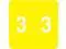 These Acme 0500 Compatible "3" Numeric Labels feature a wrap-around solid Yellow bar with a white reversed 3 printed on a white background. Label Size: 1 1/2" W x 1 1/2" H, Before Folding. Laminated for protection.