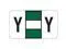 These Jeter 0200 Compatible "Y" Labels feature a wrap-around Green-colored bar and a colored "Y" printed on a white background. Label Size: 1 5/8" W x 15/16" H, Before Folding. Laminated for protection.