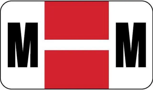 These Safeguard Compatible "M" Labels feature a wrap-around Red bar with a single White stripe and a Black "M" character printed on a White background. Label Size: 1-5/8" W x 15/16" H, Before Folding.
