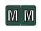 These Barkley ABKM Compatible "M" Labels feature a wrap-around solid Dark Green bar and a White "M" outlined in Black and printed on a white background.