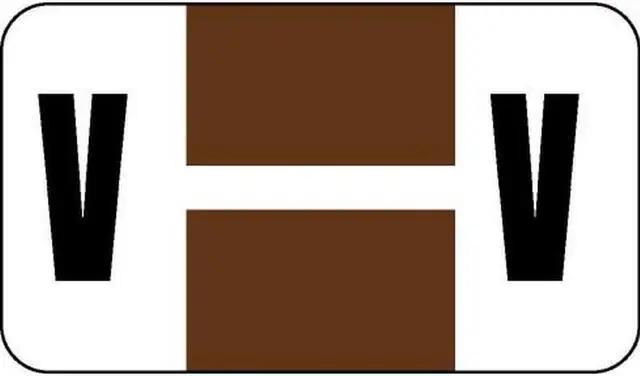 These Safeguard Compatible "V" Labels feature a wrap-around Brown bar with a single White stripe and a Black "V" character printed on a White background. Label Size: 1-5/8" W x 15/16" H, Before Folding.