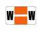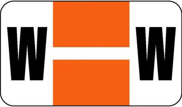 These Safeguard Compatible "W" Labels feature a wrap-around Orange bar with a single White stripe and a Black "W" character printed on a White background. Label Size: 1-5/8" W x 15/16" H, Before Folding.