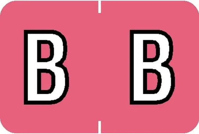 These Barkley ABKM Compatible "B" Labels feature a wrap-around solid Pink bar and a White "B" outlined in Black and printed on a white background. Label Size: 1-1/2" W X 1" H, Before Folding. Laminated for Protection